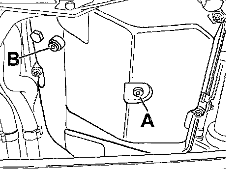 9. With engine running, top up ATF again until excess ATF emerges from the bore of the ATF control screw -B-.