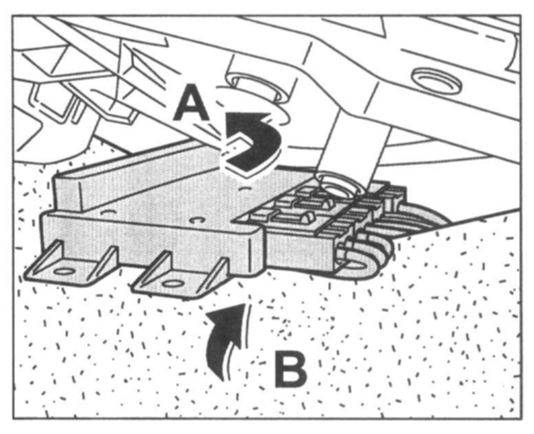 2. Push the control unit carefully over the interior carpet -B- and position it in the holder -A-.