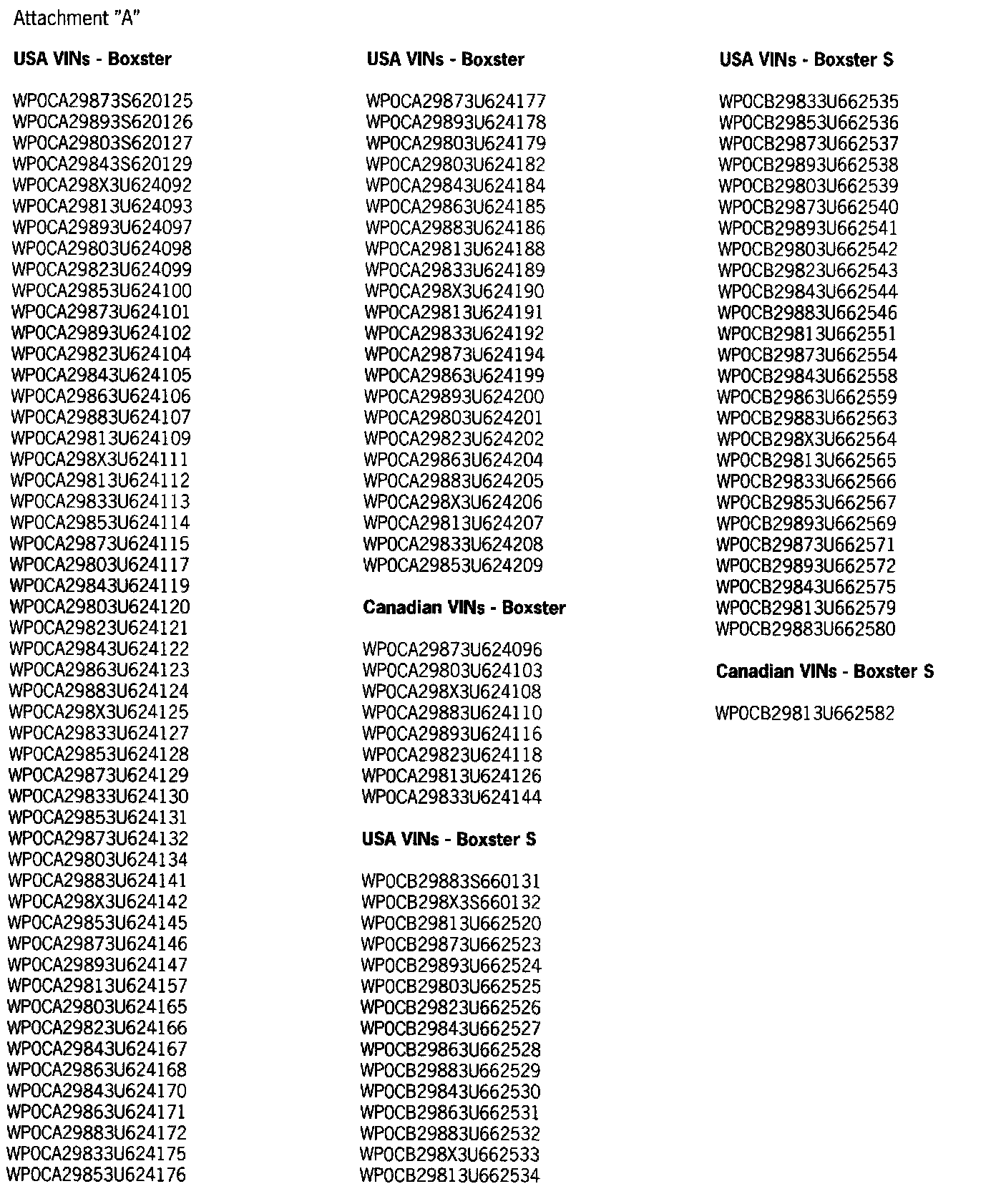Refer to Attachment "A" to determine if a particular vehicle is eligible for this service action. Alternatively, the VIN can be checked in the Porsche e-DCS/WWS for confirmation of an open service action.