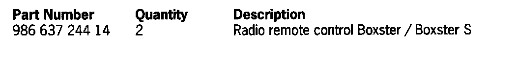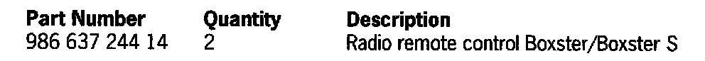 Therefore, we ask that the affected vehicles listed below have both key remotes replaced (spare key not affected) during the Porsche Owner's next visit to your workshop.
