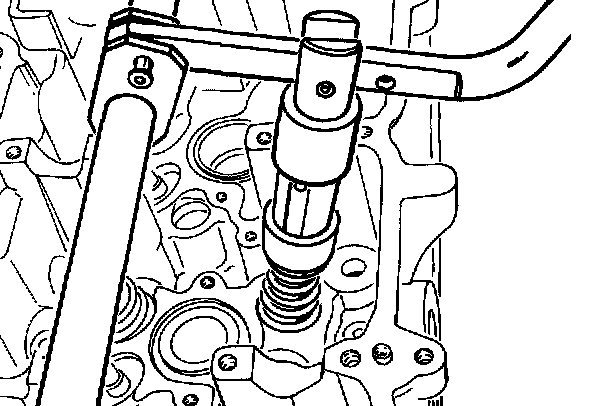 3. Fasten magnetic disassembly head to lever arm. Press valve springs together in cylinder head and undo valve collets from valve stem.