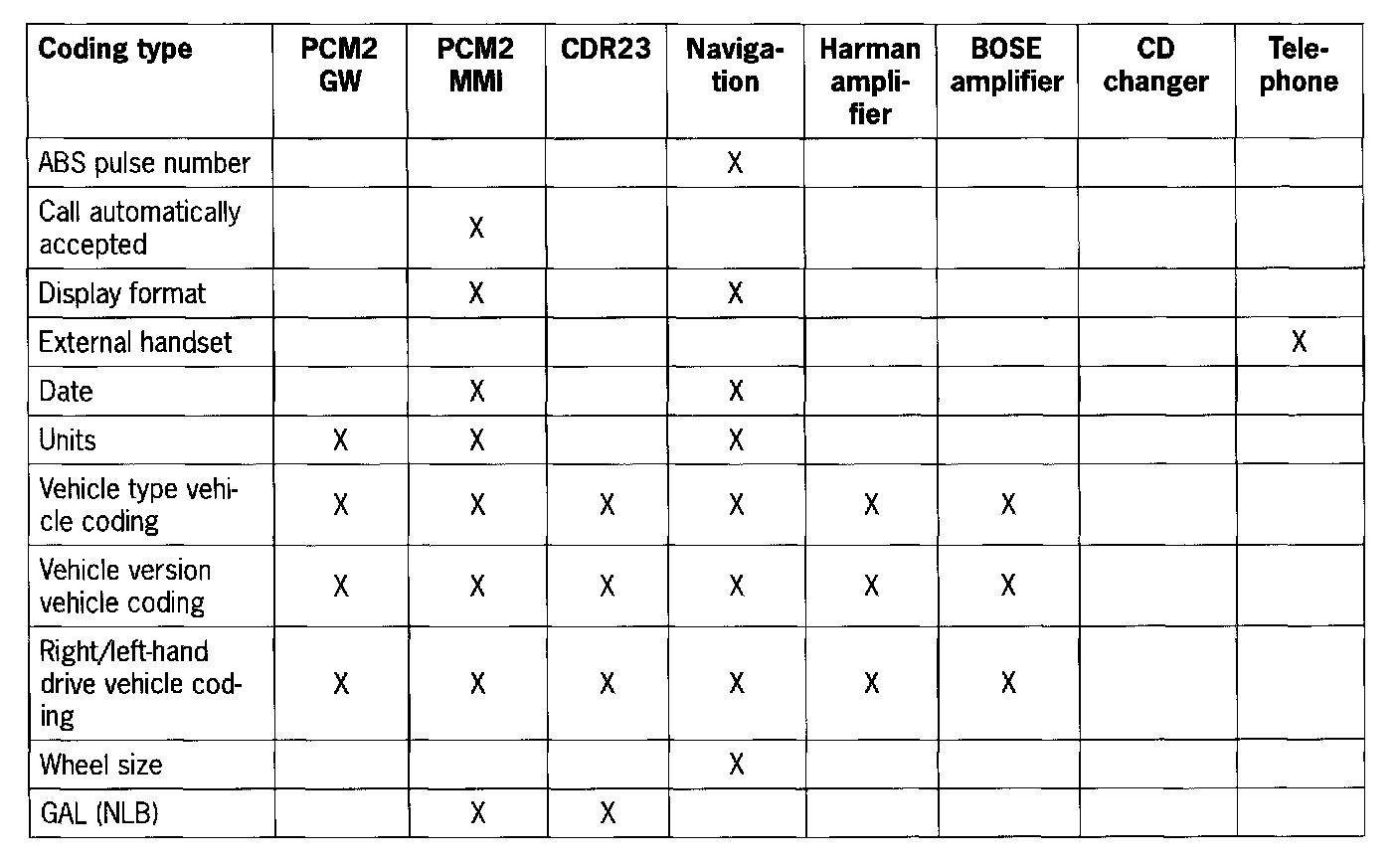 - When the PCM2 is replaced, the coding must be performed in accordance with the vehicle equipment.