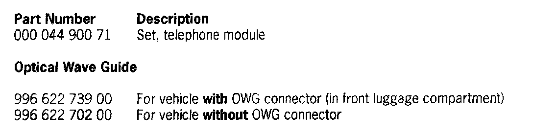 In addition to the "Telephone Module" set, the appropriate Optical Wave Guide (OWG) must be ordered! The optical wave guide depends on: