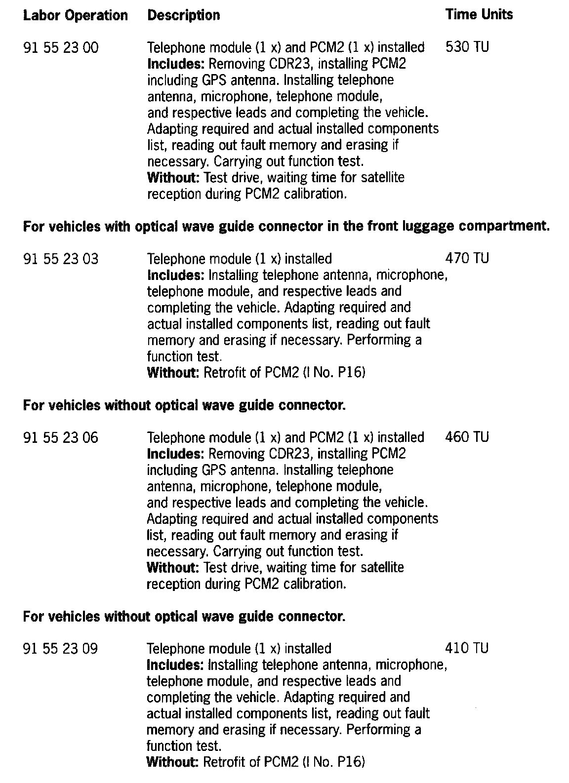Installation of the Telephone Module (Option I No. 666). Only for vehicles with PCM2 (Option I No. P16 information: