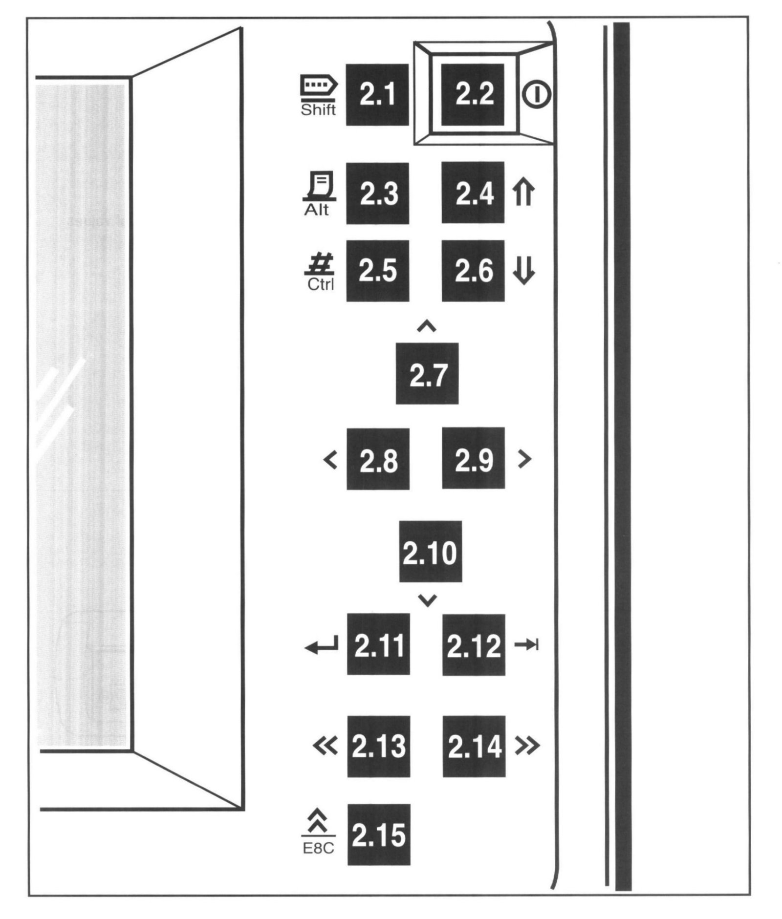 2. Press key 2.5 and key 2.6 ->Display will darken