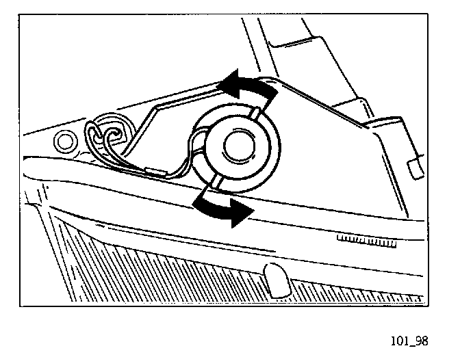 2. Rotate bulb socket clockwise and engage. Install main headlight and perform a function test.