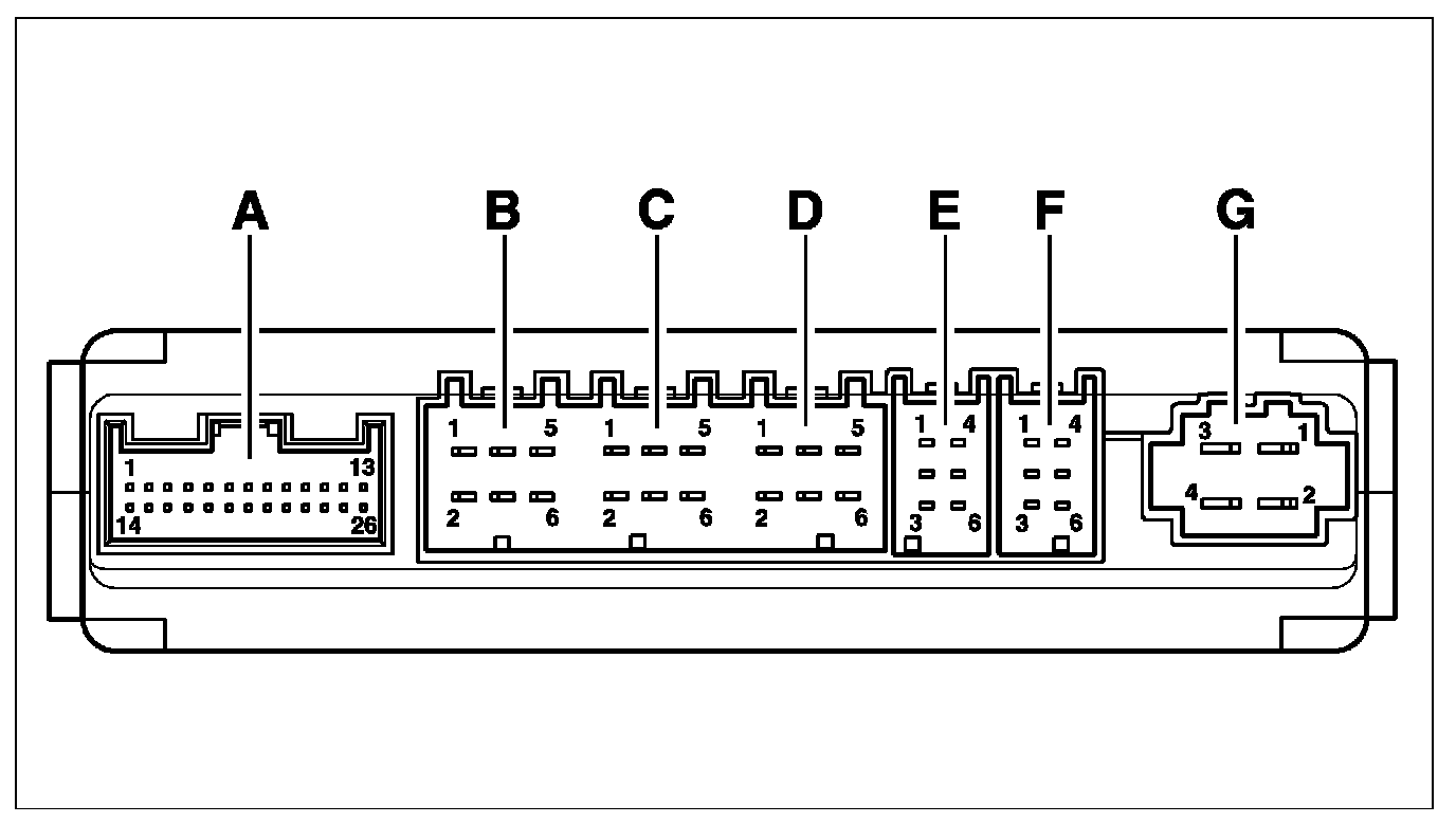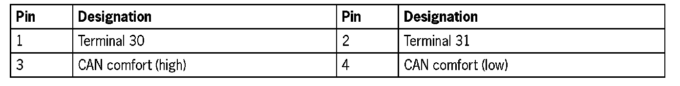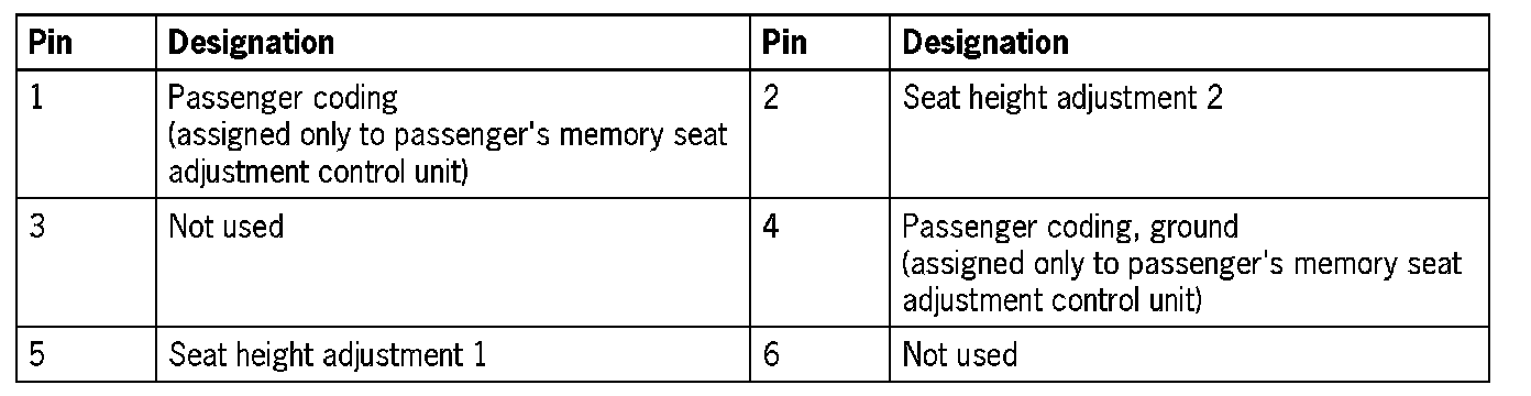 Connector P, 16-pin (only assigned for belt height and steering column adjustment)