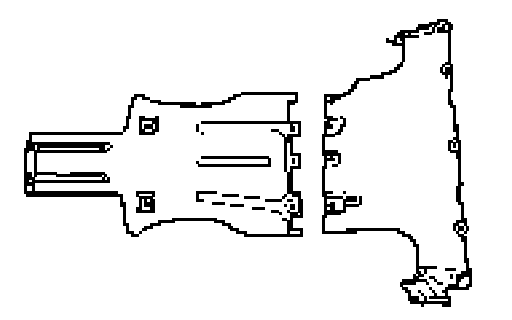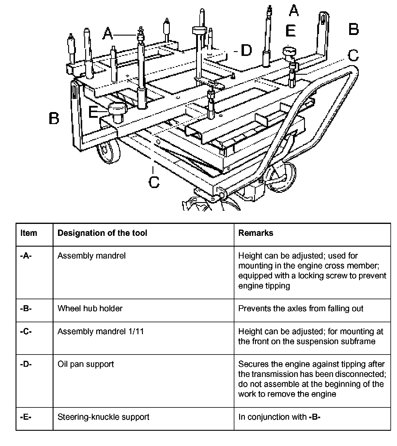 48. Place the elevating platform under the engine and raise it. When you do this, ensure that the positioning guides of the elevating platform are inserted into the body.