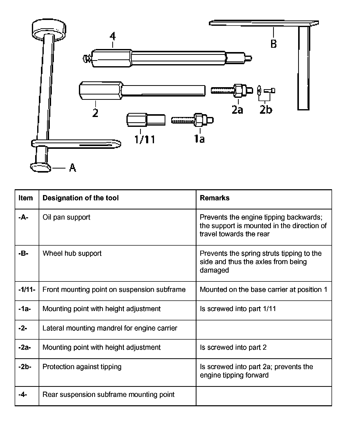 Note: Because of the high loosening torque, the six fastening screws on the suspension subframe can now tee loosened. Loosen the screws bye maximum of one turn.