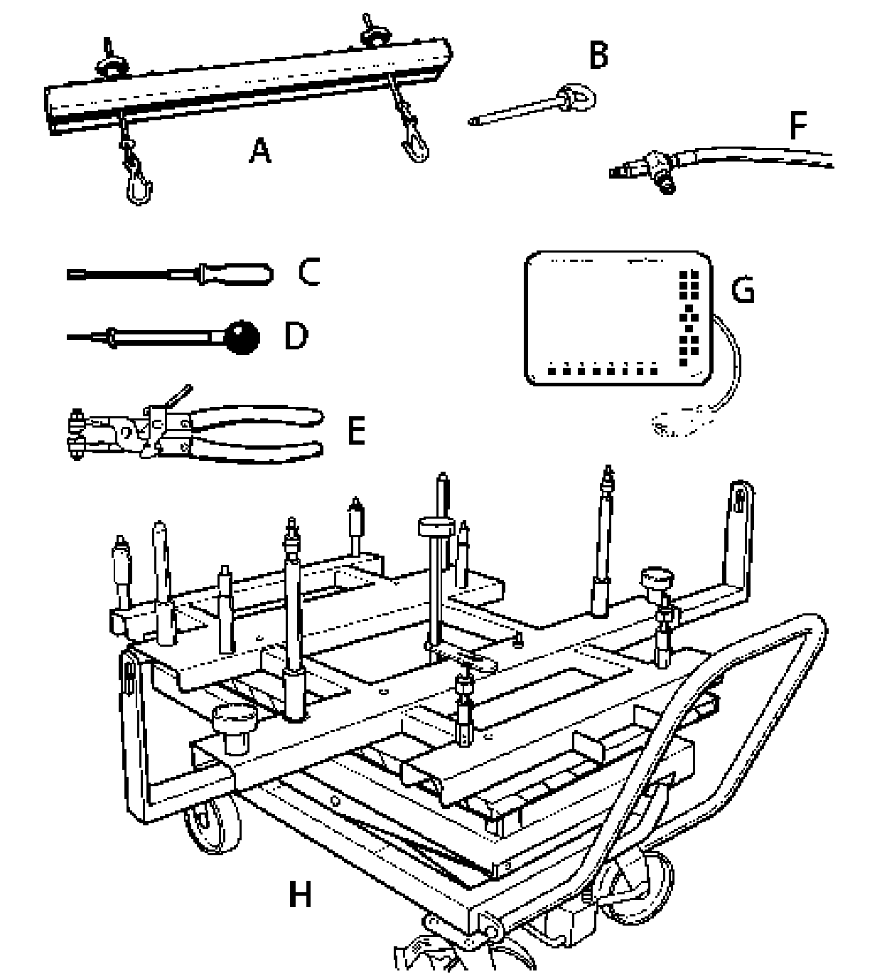 ^ Position the vehicle at the take-up points provided on a lifting platform.