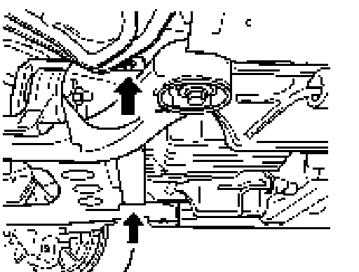 ^ It is easier to remove the air-conditioning compressor from its installation position if the engine has already been lowered a little.