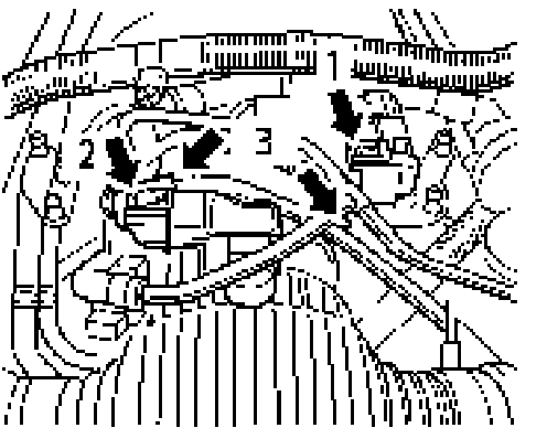 21. Disconnect the two coolant lines and the vacuum line on the right side of the engine compartment.
