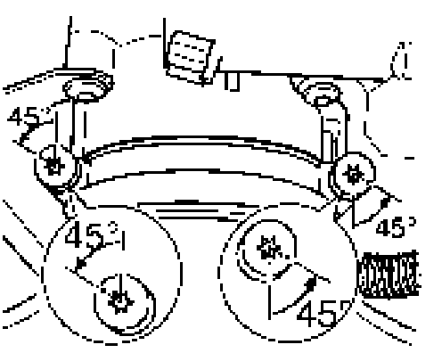 13. Release the fastening bolts on the throttle body. To do this, twist both bolts through 45° in an anti-clockwise direction. The dot on the bolt must appear as illustrated in the figure.