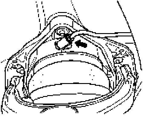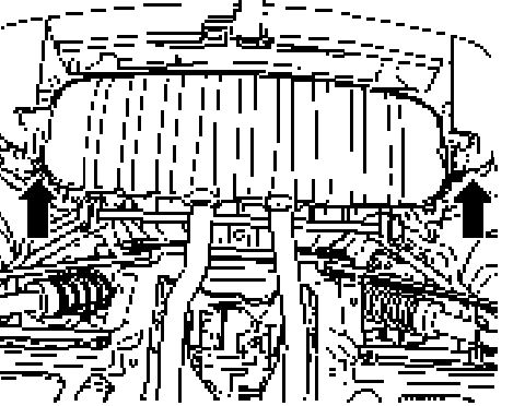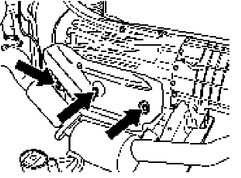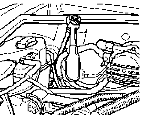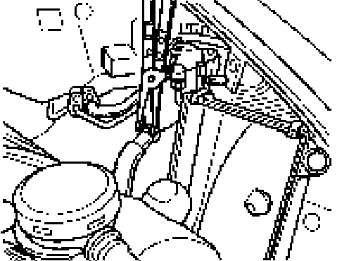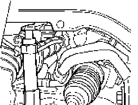 25. Undo the three fastening screws (a/f 16) on the left and right spring struts. The screws are loosened from inside the engine compartment. One of the three screws for each spring strut is located in the radiator tank. The screws must not be reused.