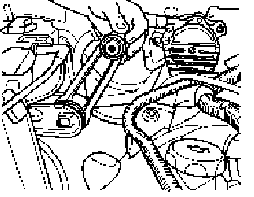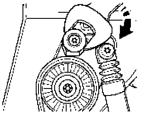 ^ The drive belt must be slackened so that the air-conditioning compressor can be removed later.