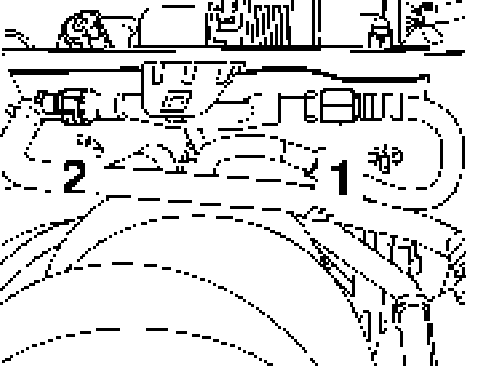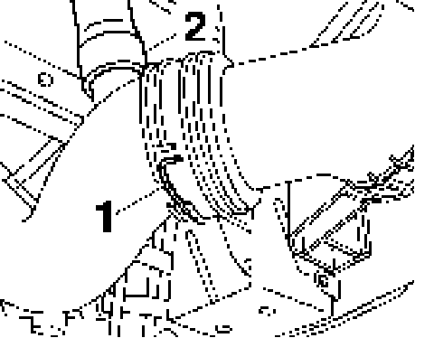 24. Disconnect fuel line -1- and line -2- from the carbon canister on the radiator tank splash panel.