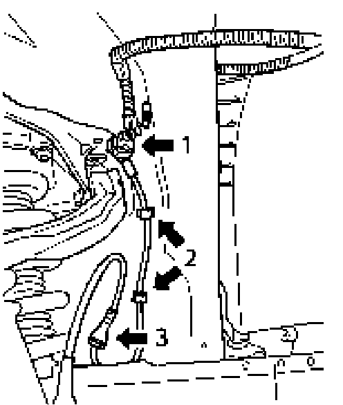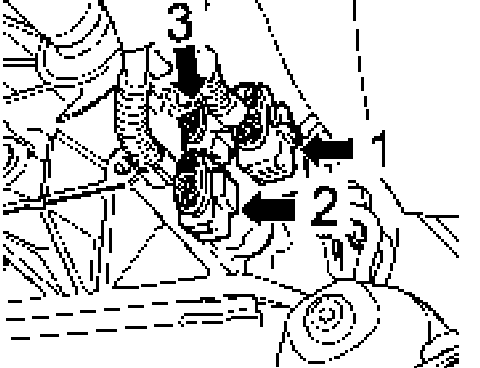 28. Disconnect electric plug -1- on the spring struts in the wheel well. Next, unclip holders -2 and 3-. Tie the cable on the spring strut.