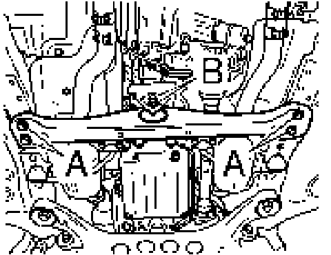 52. Loosen the four fastening screws on the suspension subframe and the two fastening screws of the engine transverse bar.