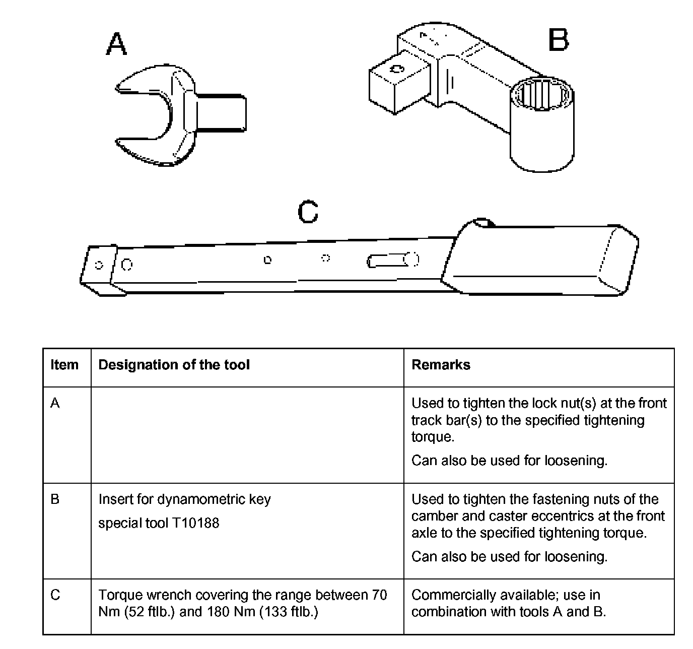 Specified tightening torque of fastening nut(s) (lock nut) -C- = 70 Nm (52 ft. lbs.).