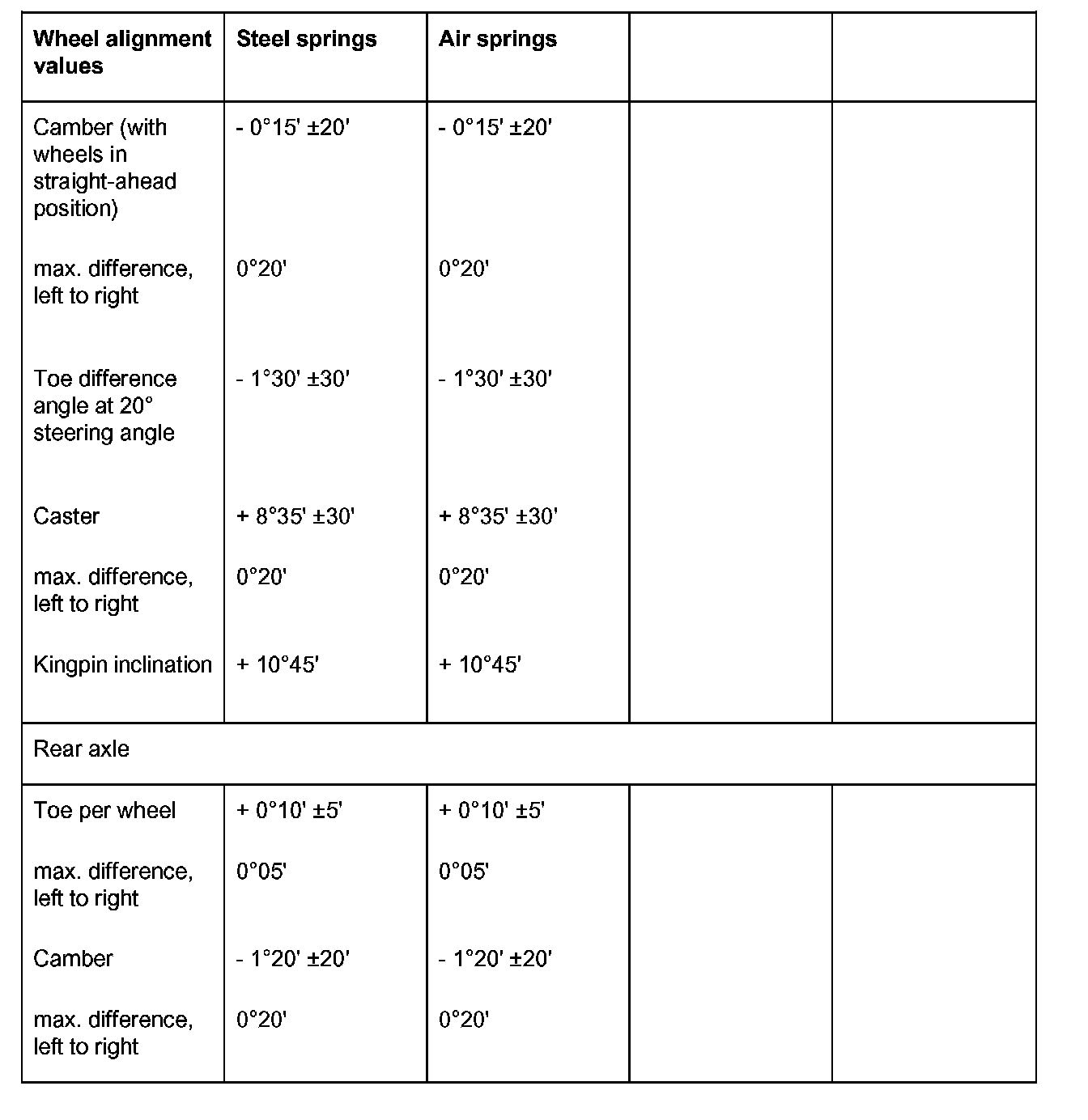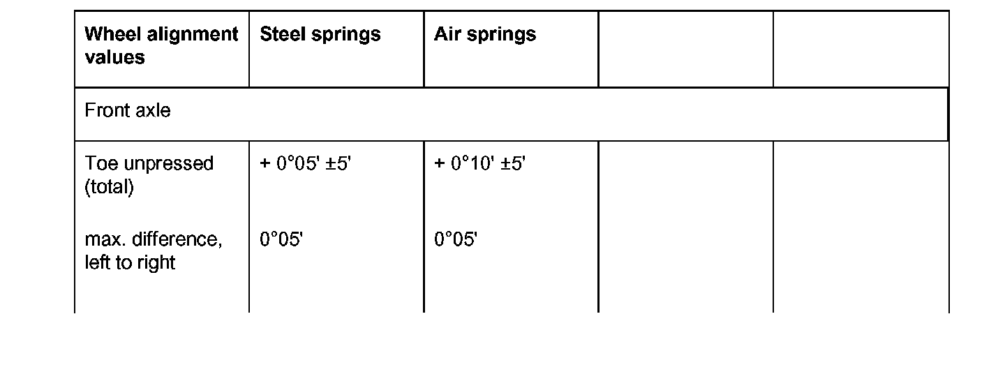Wheel alignment valuesWarning! Danger of injury and damage to property due to malfunctions in the PSM control range if the steering angle sensor is not calibrated or is calibrated incorrectly!