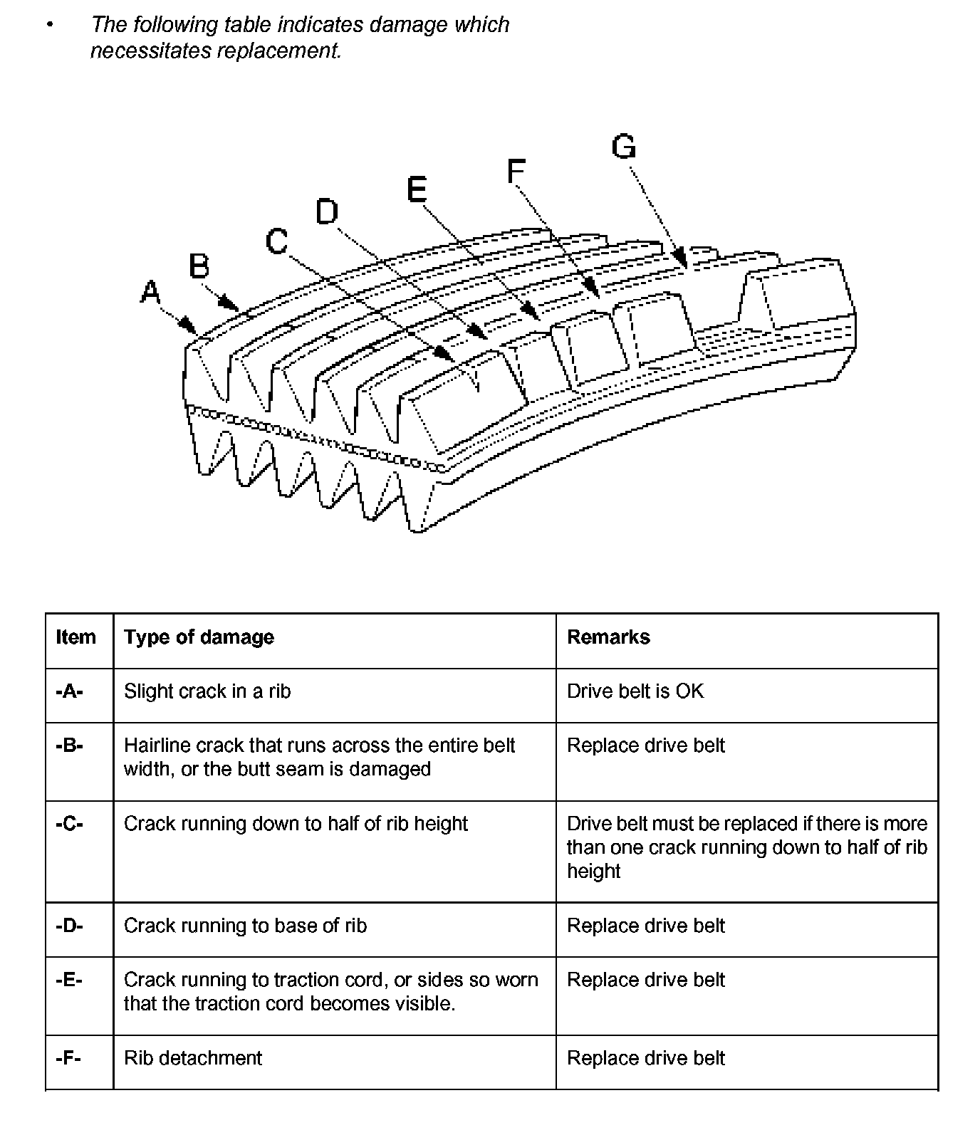Note: If spark plugs must be changed during the course of maintenance operations, the drive belt should be checked when the spark plugs are removed. The engine can then be cranked easier.