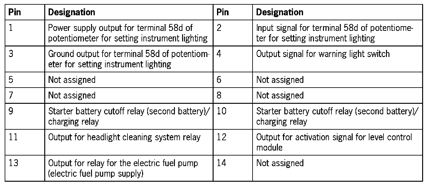 Connector assignmentNOTE: The plugs on the vehicle electrical system control module can only be pulled off and re-connected in a certain sequence.