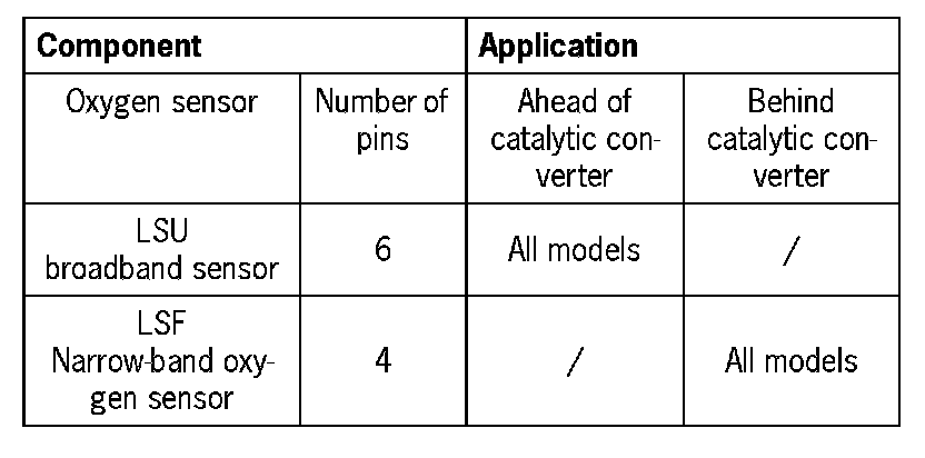 Do not confuse oxygen sensor ahead of catalytic converter and oxygen sensor after catalytic converter as this Will cause implausible fault entries. This note refers to the possibility of mistakenly installing a sensor intended for installation in front of the catalytic converter at the installation position for the sensor behind the catalytic converter in the exhaust system. The plugs themselves are coded and cannot be swapped.