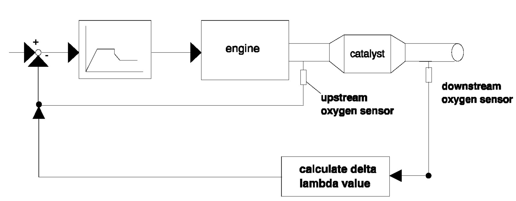 The Lambda control consists of a linear Oxygen sensor (LSU) upstream catalyst and one Oxygen sensor downstream front catalyst and post main catalyst. The control loops downstream catalysts correct deviations of the upstream oxygen sensor (LSU).