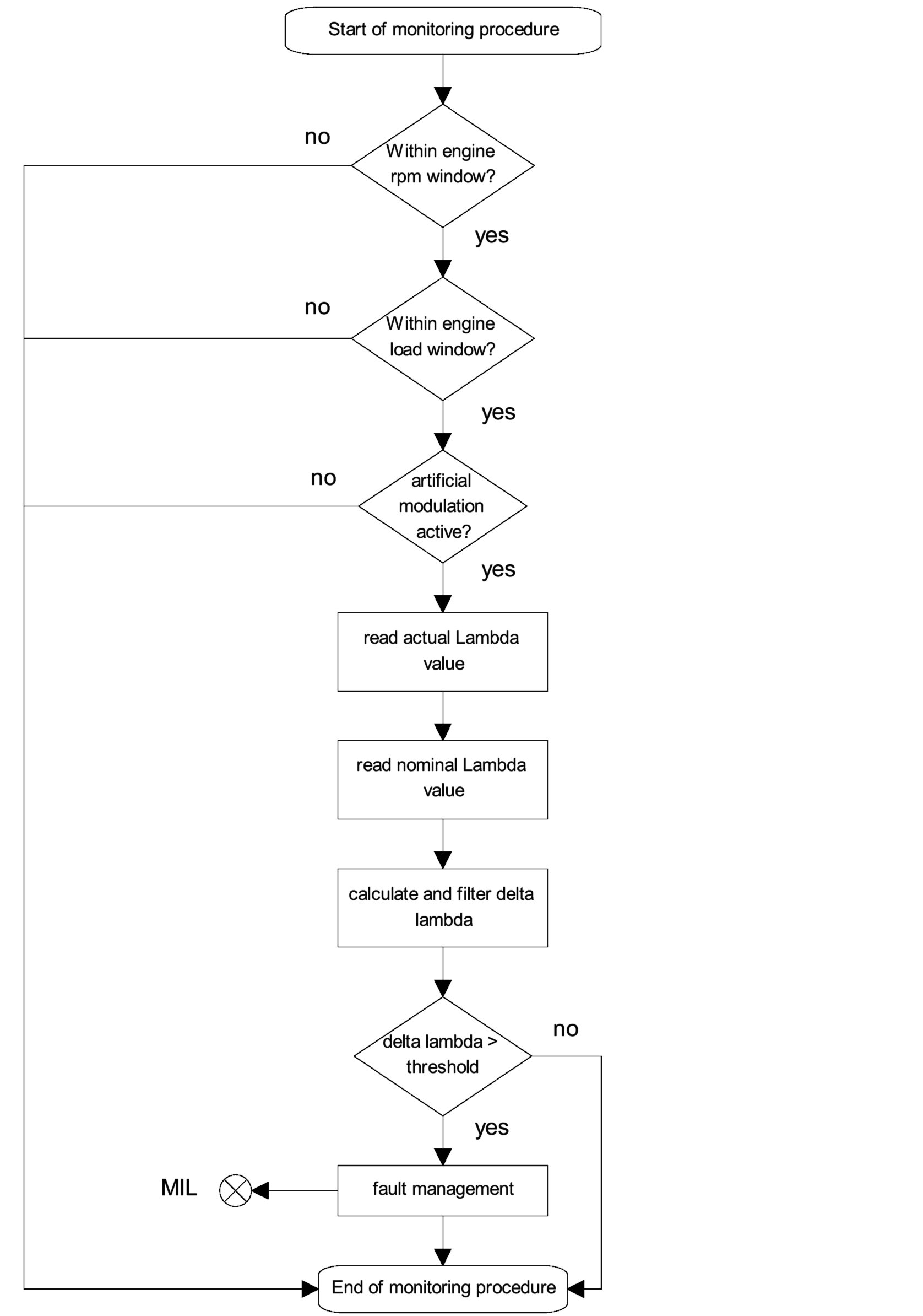 Any change in the dynamic behaviour of the Oxygen sensor due to aging, heater fault, wiring brake or contamination will be detected by watching the increase of the Lambda value.