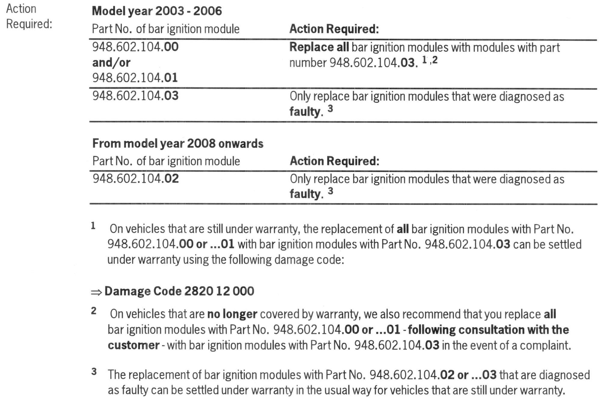 Bar ignition modules with Part Nos. 948.602.104.00/...01/...02/...03