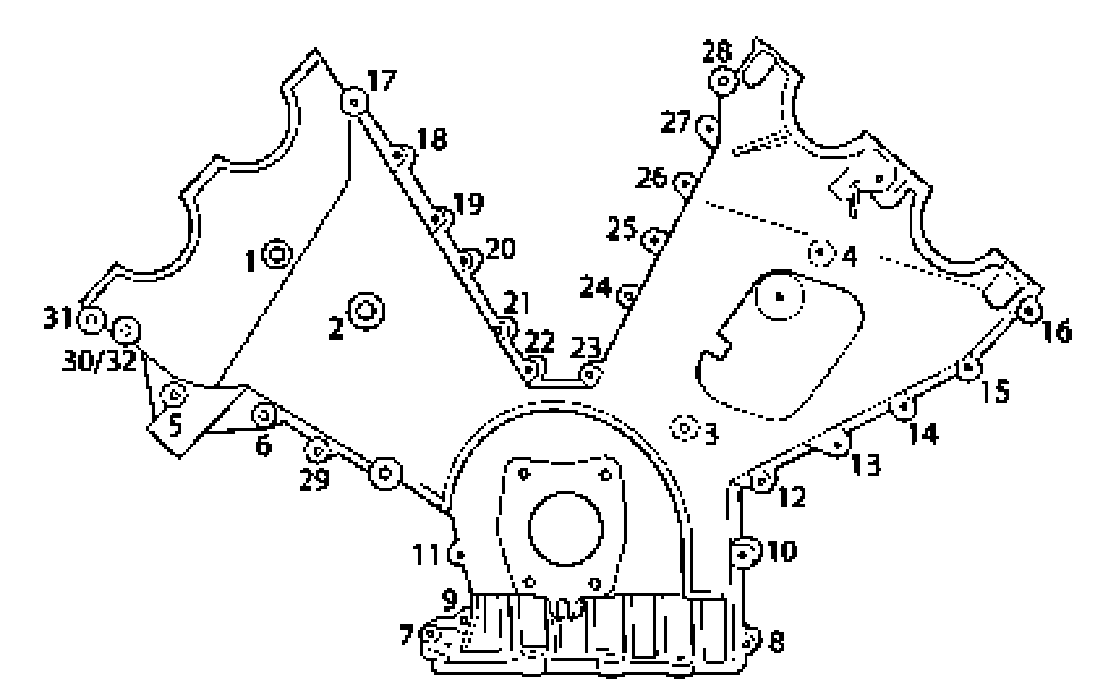 Tighten the remaining fastening screws to the appropriate torque in the order shown.