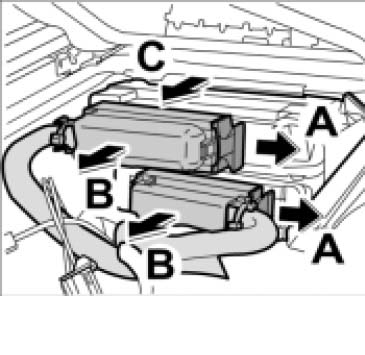 9. Remove the support with the two control units -C-.