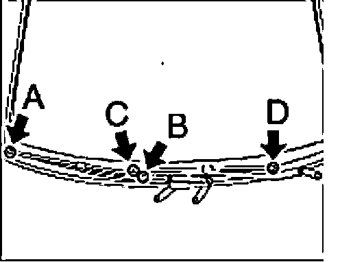 2. The wipers must be positioned at particular points on the windscreen. Priority 1 is assigned to the wiper on the driver's side with points "C" and "D". Then set the wiper on the passenger's side to points "A" and "B".