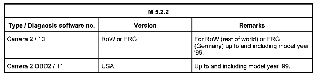 - To enable the Diagnosis Software No. to be completely tracked, the Software No. is listed in this chapter as of M 5.2.2.