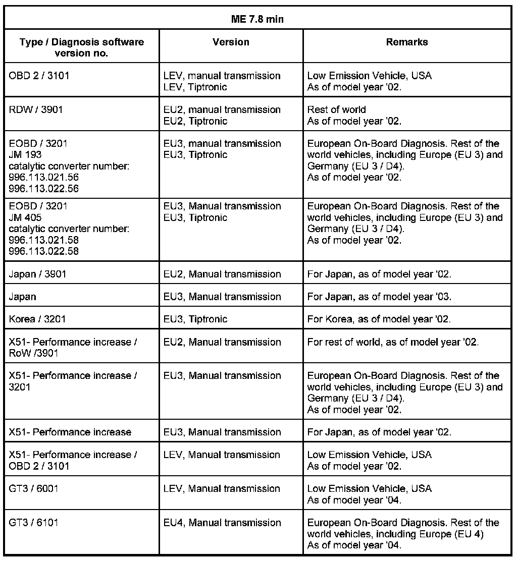 - A differentiation is made in the EU3 version under JM 193 and JM 405. This is due to the fact that the vehicles have different catalytic converters installed. The catalytic converter number must be read off and can be allocated to the correct software in the following table.