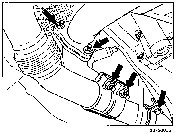 5. Remove catalytic converter for cylinder bank 4 - 6, taking care not to damage the loosened oxygen sensors.