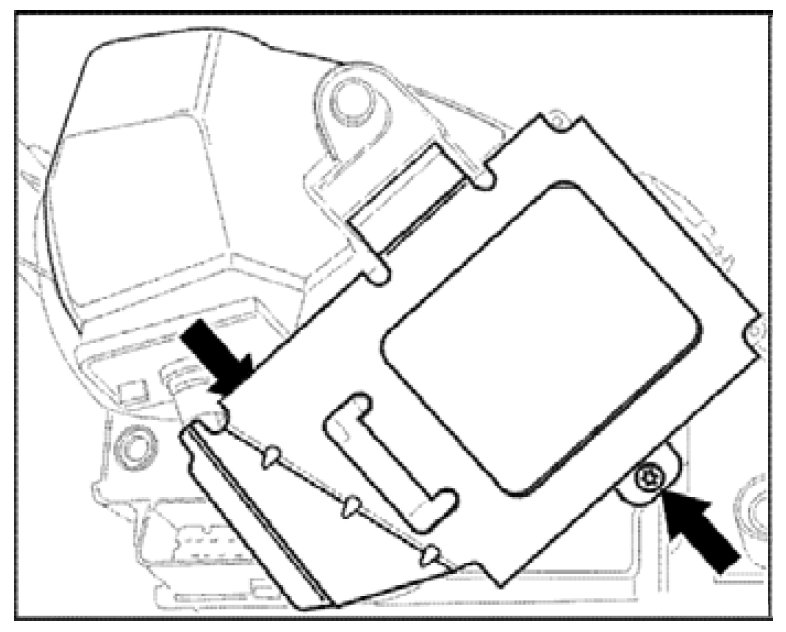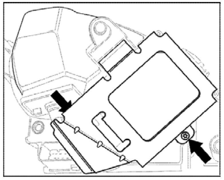 3. Unscrew fastening screws -arrow- from the control module holder and remove holder.