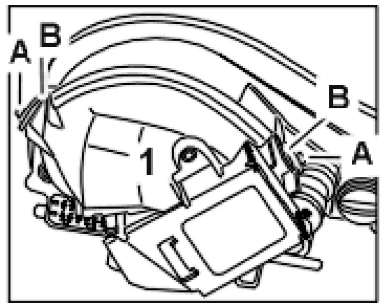 5. Put the cap -1- into position and press down until both locking tabs -B- engage. Screw in both fastening screws -A-. - Tightening torque: 4 Nm (3 ftlb.).