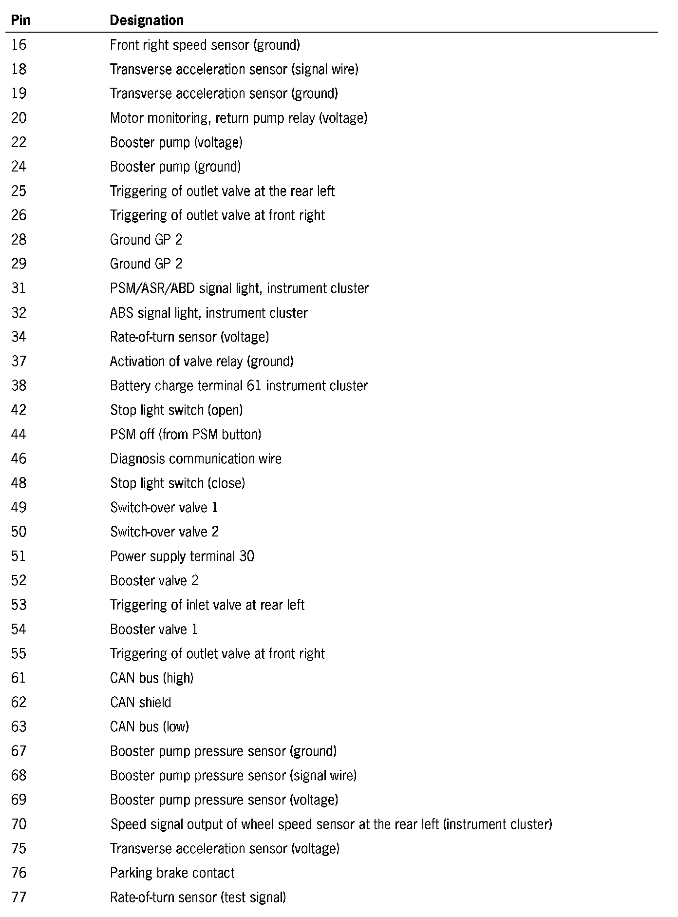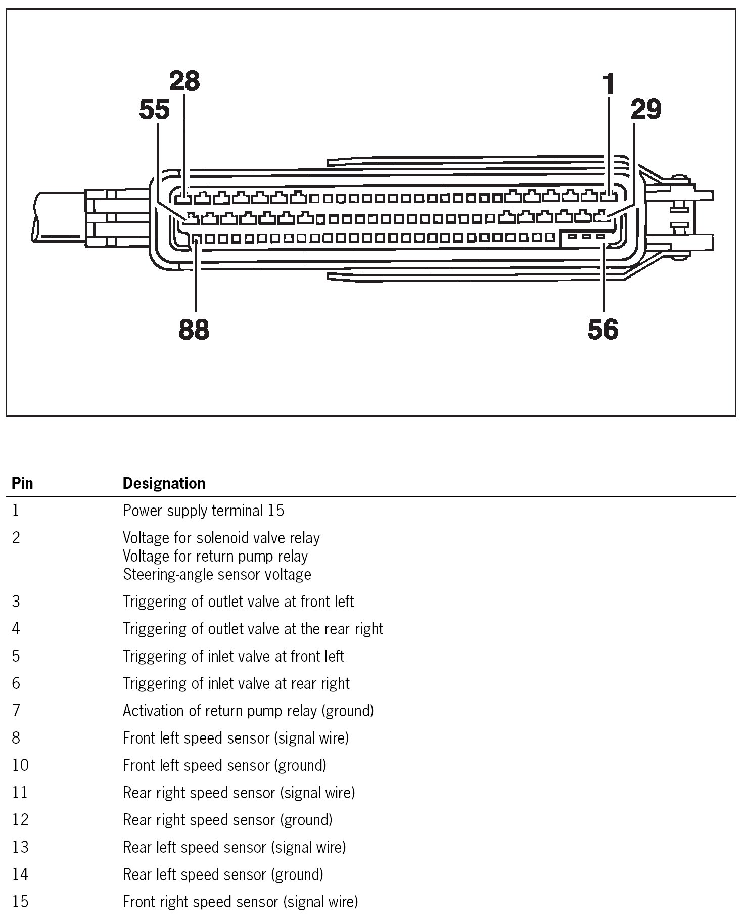 The plug connections X1/3, X1/4 and the solenoid valve and return pump relays are located in the passenger compartment wiring harness on the left at the front behind the PSM control module.