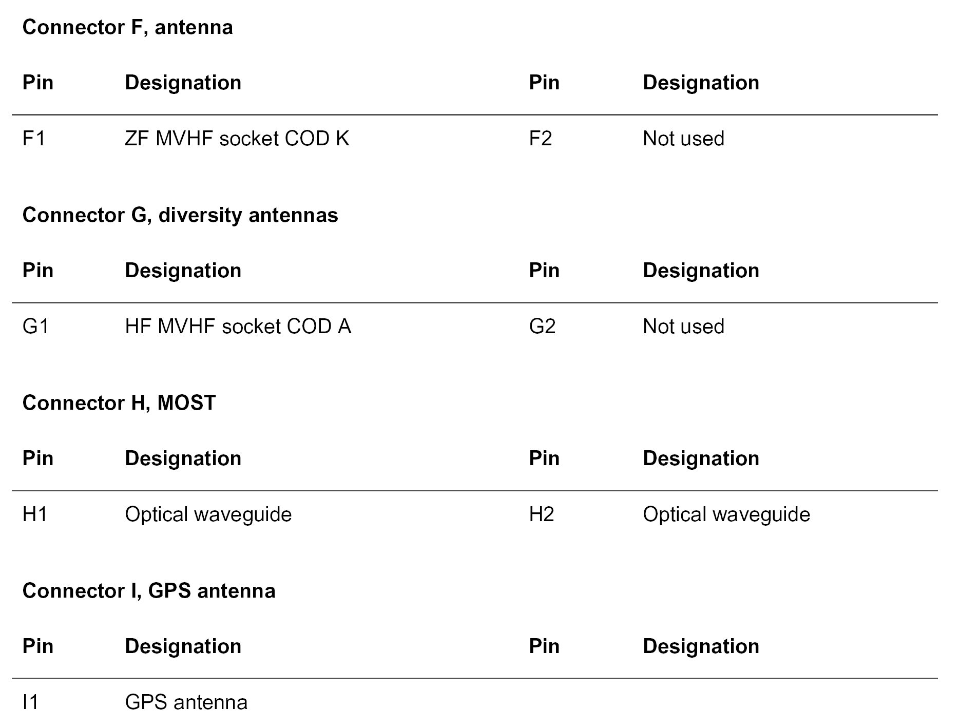 PCM2 Gateway Connector Assignment (Part 2):