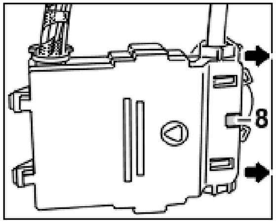2. Carefully lever off the cover -A-, e.g. with a screwdriver -arrow-. This will break the locking tabs and the cover can be removed.