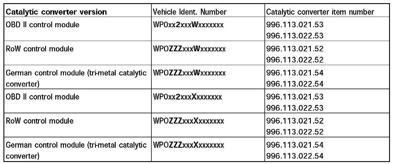 - Ensure correct allocation of the data record in the control module to the installed catalytic converter (refer to the allocation table)