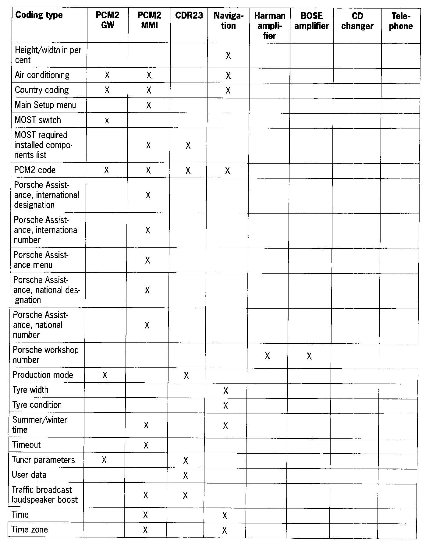 - When the PCM2 is replaced, the coding must be performed in accordance with the connected MOST control modules.