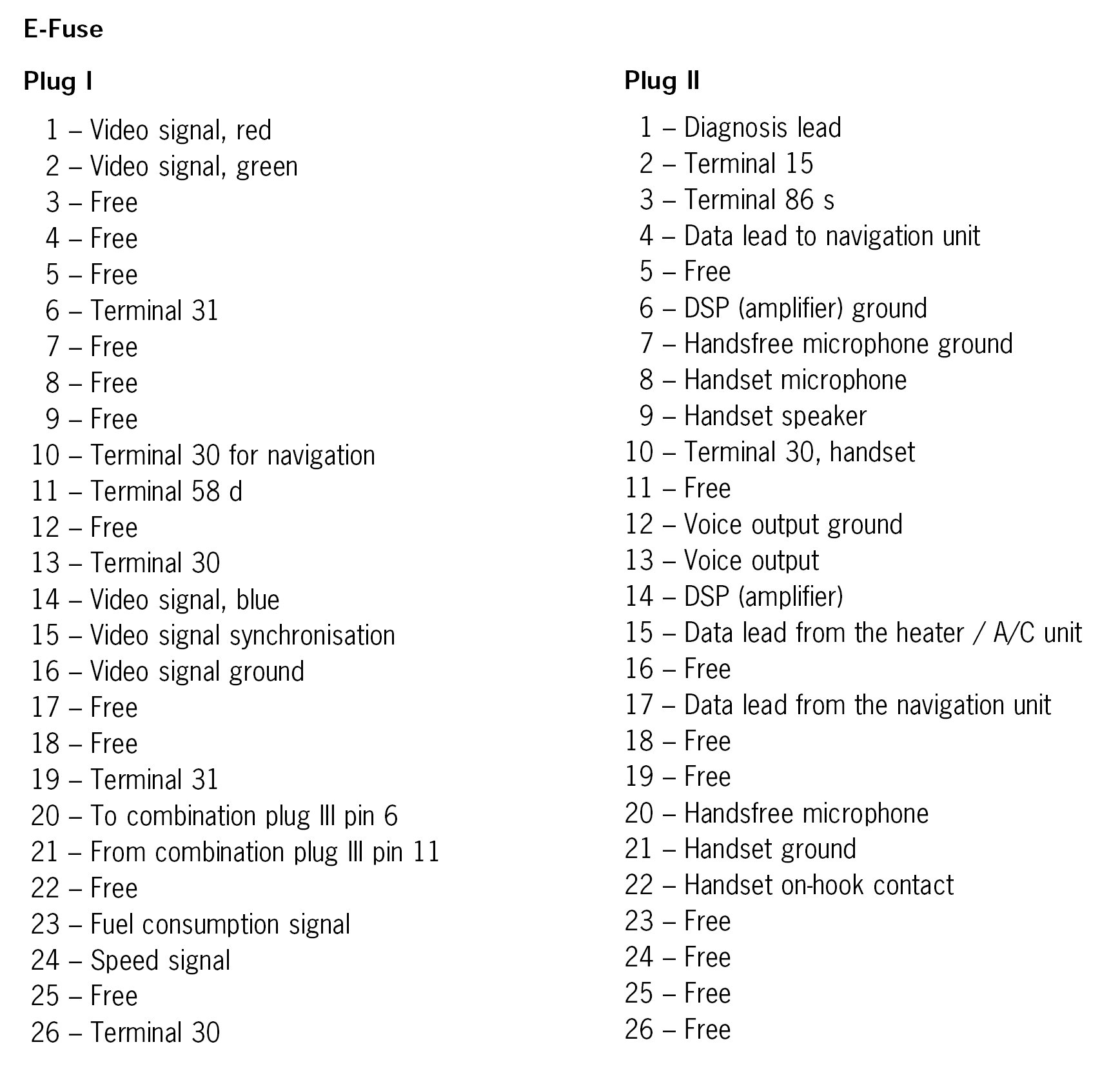 Connector Pin Assignment, Display and Operator Control Unit (PCM)