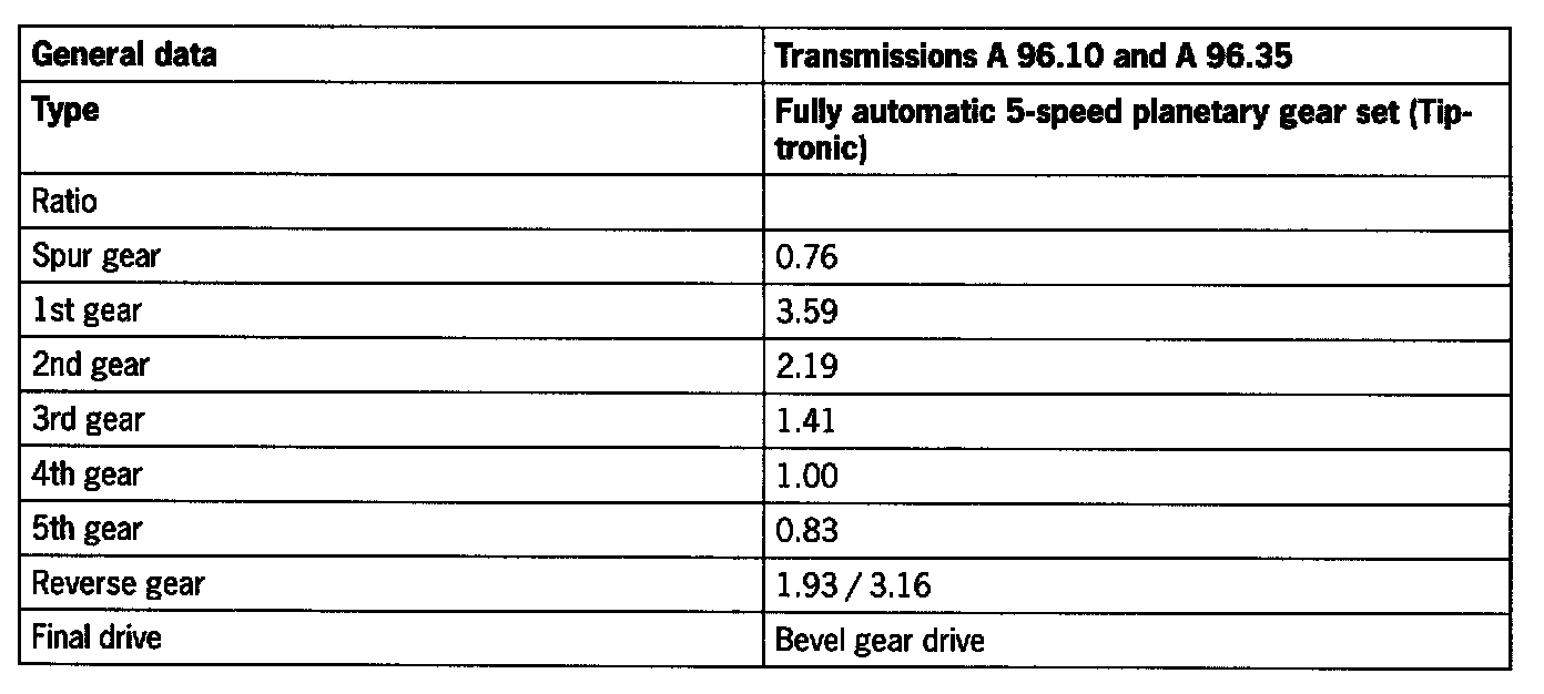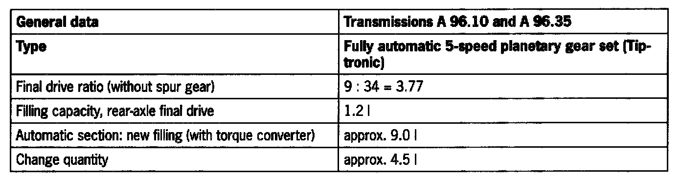 5-Speed Tiptronic Transmissions A 96.10 (C2) And A 96.35 (C4)