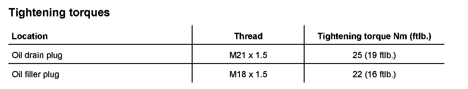Filler plug tightening torque: 22 Nm (16 ftlb.)