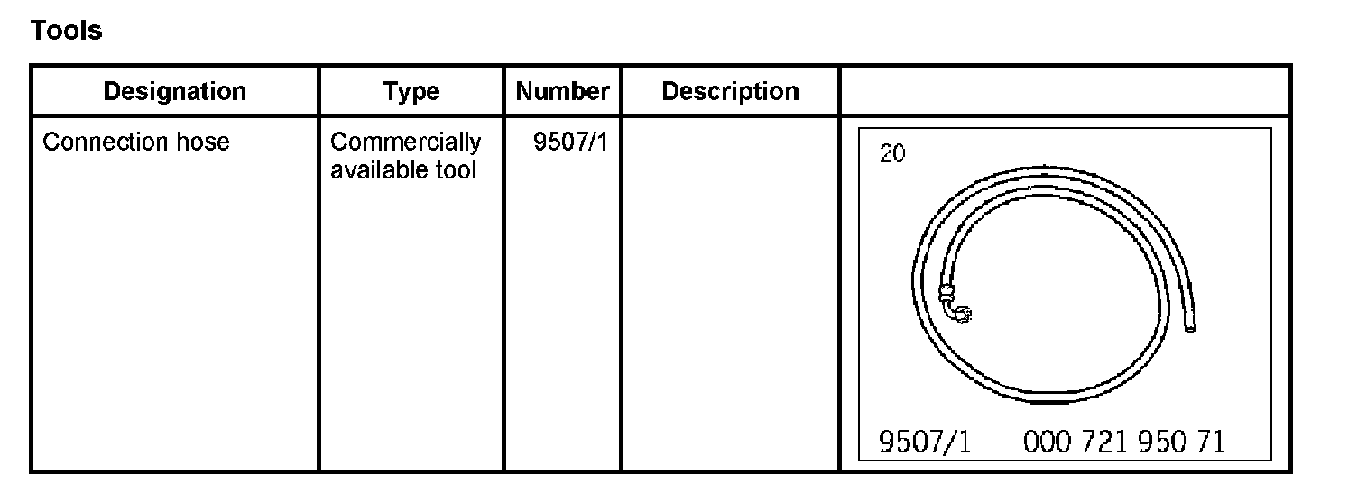 6. Screw connection hose 9507/1 -A- onto charging valve. Top up with ATF via the charging valve until surplus ATF runs out at the control screw bore.