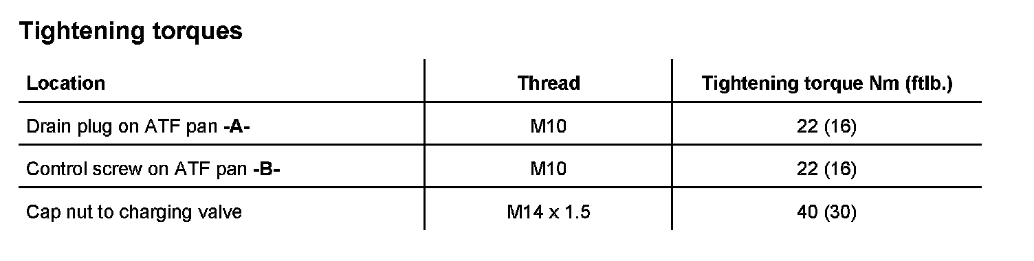 ^ The ATF temperature must not be higher than 40 °C at the start of the test.