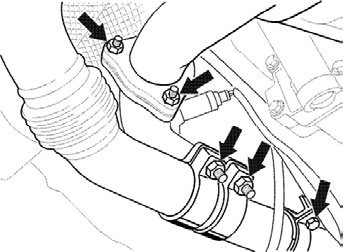 5. Fasten the clamp between catalytic converter and engine carrier.