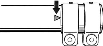 4. Align clamping sleeve. The position is designated by embossed arrowheads. The clamping sleeve is positioned in the centre between the arrowheads. Tighten clamping sleeve. Tightening torque: 46 Nm (34 ftlb.)